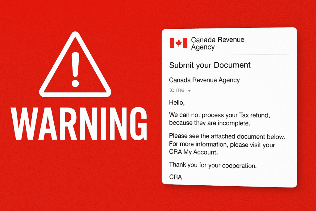Fraudsters impersonated the Canada Revenue Agency, offering “remote tax agent jobs” while stealing SIN numbers and personal details.